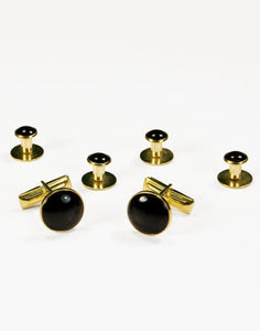 Basic Black with Gold Trim Studs and Cufflinks Set