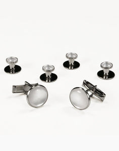 Basic Black with Silver Trim Studs and Cufflinks Set