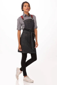 Berkeley Jet Black Denim Short Bib Snap Apron