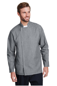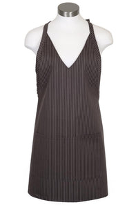 Charcoal V-Neck Pinstripe Bib Adjustable Apron (2 Patch Pockets)