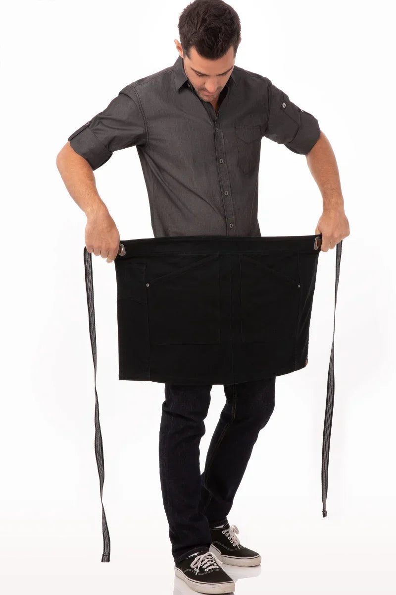 There was a dark time when culinary apparel was bland and boring. Thank goodness we’ve evolved. The Berkeley Half Bistro Apron is the next epoch in that evolution with an edgy design and functional features for cooks and servers.