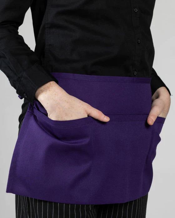 The Purple Waist Apron (3 Pockets) features an ultra-durable 7.5 oz. performance twill fabric. The perfect balance between 65% polyester and 35% cotton ensures this cobbler is durable enough to take daily abuse at work while maintaining a desired level of softness and comfort.
